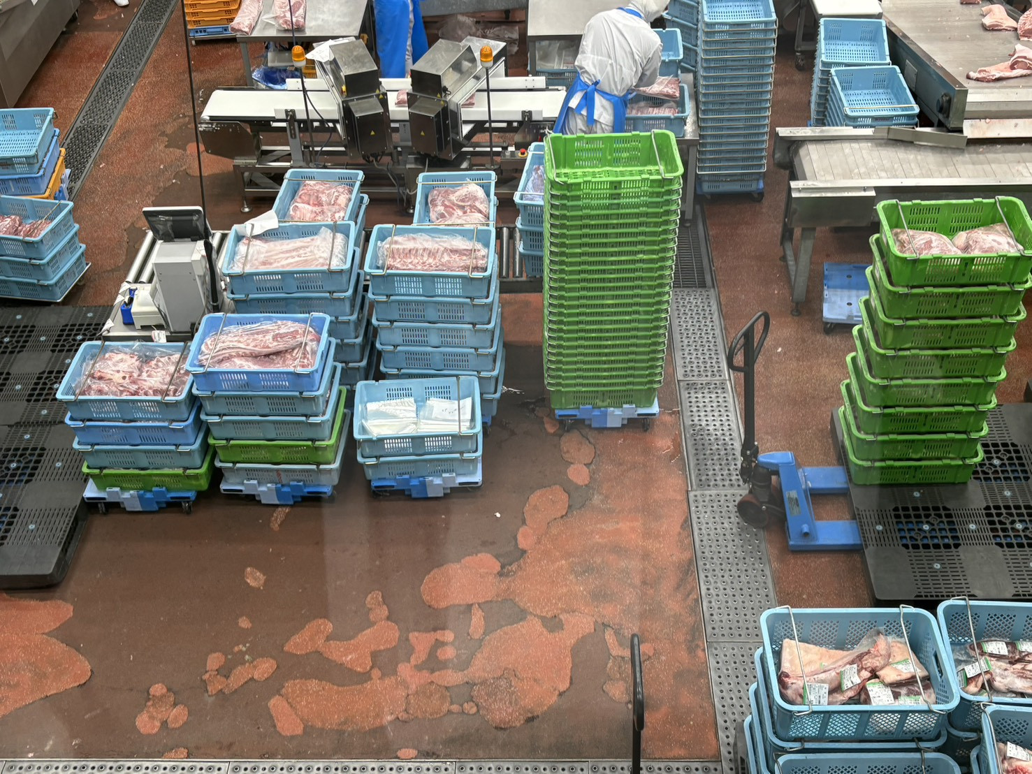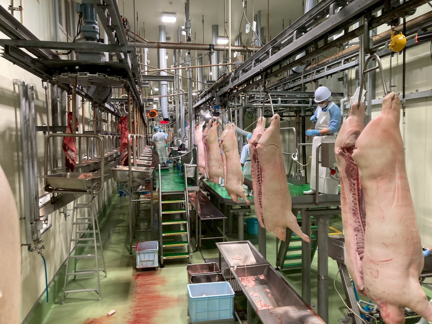 驚きは、国の補助金頼りの経営ではないこと。屠畜場は、多くの設備投資、水と電力、人手が必要なため、費用が嵩みやす傾向にあります。助成が必要とされる業種ではありますが、自由な企業努力を優先した経営方針とのことです。また驚いたことに、働く方々の平均年齢が36歳と若いことでした。
